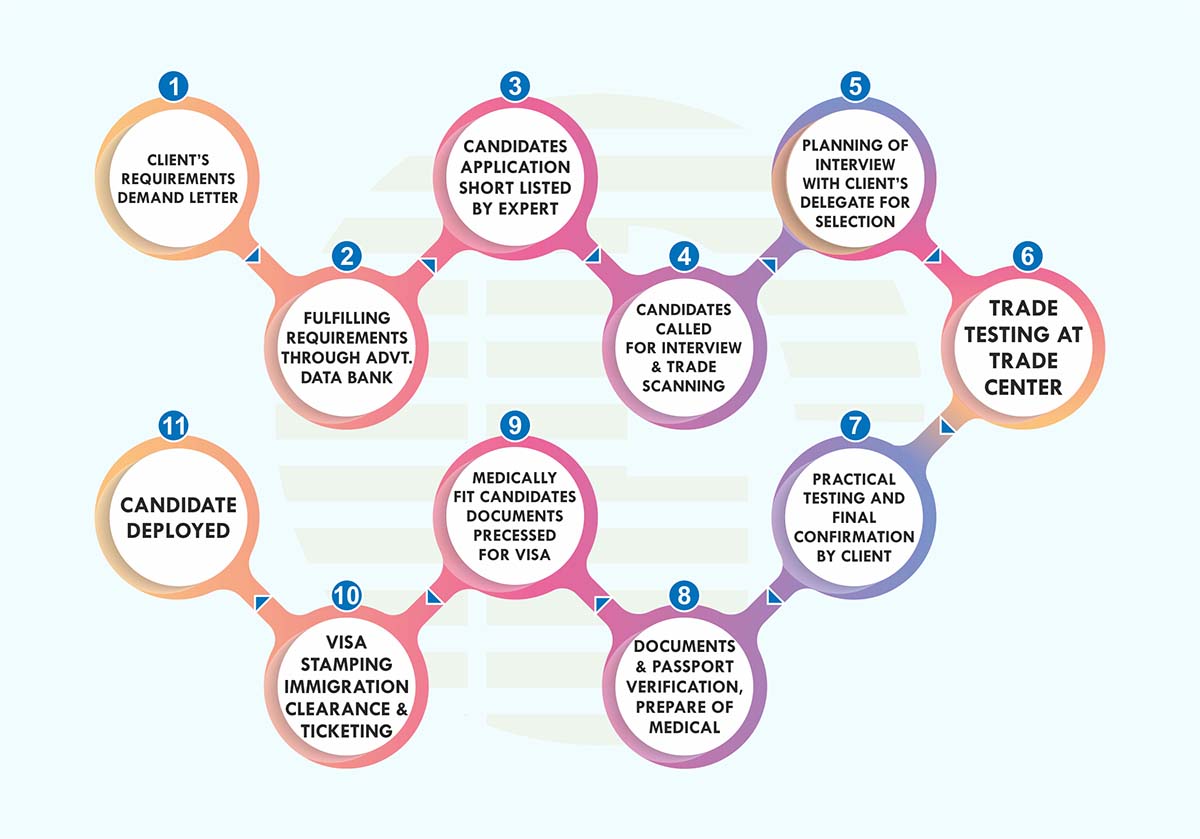 We always prefer a selection of applicants either by oral or practical test to be conducted by the employer or his authorized representative. We arrange for the clients local transport and other logistic support required for the purpose.